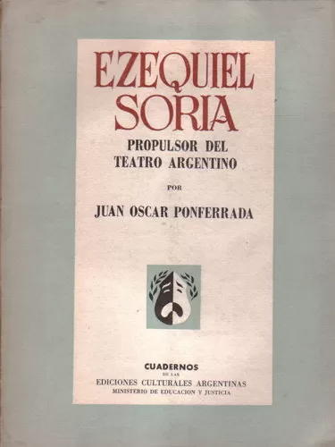 55 páginas. Esta monografía es el esbozo de un trabajo más amplio sobre la personalidad de Ezequiel Soria; trabajo cuyo plan involucra al escritor, al director artístico, al pionero, al forjador teatral y —por todo ello y lo que significa su acción institutora— al propulsor del teatro argentino. Detrás de cada una de esas facetas busqué al hombre que alimentó con sus vigilias y sueños la empresa de ser útil, por el arte, a su pueblo. Y esto último, es decir: la circunstancia humana, me ha inducido a extender aquí ciertos aspectos relacionados con el clima físico en que nació y creció don Ezeqiuel. Nadie ignora que el ser es, en buena medida, resultancia del medio. Pensando, pues, que el tramo de la vida de Soria que menos se conoce, por haberse indagado también menos, es el lapso en que aún no había surgido a la notoriedad, me ha parecido cuerdo mantener en este breve ensayo la extenúan que tenía dentro del plan originario el examen del clima provincial en que el biografiado se formó bajo el signo romántico y del que tengo referencias directas. De un ensayo biográfico en cierto modo novelado entresaqué lo que se presentaba más avenido con la naturaleza de esta publicación, para incluirse en ella. Si hay poca proporción entre sus partes o del conjunto en relación a su objeto, que me excuse el lector en homenaje al tema y teniendo presente el especial enfoque que de asunto tan amplio tuve que hacer aquí. No podría dejar de mencionar agradecidamente a las personas que de un modo u otro me allanaron las cuestas para la información facilitandome materiales diversos o haciendo indagaciones. Doña Sara Perkins de Soria, quien antes de partir al via}e de su alma había hablado conmigo en más de una ocasión acerca de su esposo —a quien acompañó como un ángel solícito—, puso en mis manos poemas y papeles que de mucho sirvieron para observar al hombre de casa para adentro. Mi muy querido amigo y admirable estudioso, el Pbro. Ramón Rosa Olmos, distrajo algunos días de su tiempo de historiador constantemente activo para ofrecerme el fruto de sus rastreos en archivos y libros viejos de Catamarca. Otro amigo no menos generoso y cordial, ]uan José de Urquiza, me facilitó cartas y me condujo de la mano, charlando, por el vasto e intrincado archivo de su tío, el comediógrafo García Velloso — noble avanzado del teatro argentino cuya vida y labor reclaman a justo mérito un buen capítulo en nuestra historia escénica y literaria— donde hallé referencias sustanciales de la lucha de Sor/a. Finalmente, Lucila Ponferrada, supo ayudarme con empeño fraterno en las indagaciones, a cuyo fin se sumergió en la lectura de constancias pretéritas descubriendo las huellas del estudiante Soria en los colegios donde fue educado. Que el lector recuerde a ellos como yo los estimo. — J.O.P.