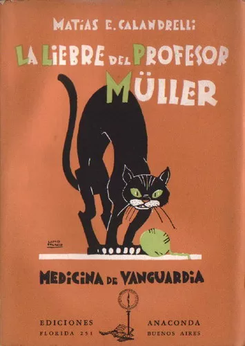 255 páginas. Primera edición. Colección Ensayos. El doctor Matías E. Calandrelli, fallecido en 1951, médico argentino de jerarquía y a la vez escritor originalísimo, humorista y poeta, con su obra “La Liebre del Profesor Müller” se ha hecho conocer tanto en Latino América como en España. De este libro, verdadero éxito de librería, en pocos meses se agotaron quince ediciones. Es una amenísima crítica a las exageraciones de la “Medicina de vanguardia”, como la llama el autor. Este mal, siempre en auge permite que la obra no envejezca, y que lo escrito para una época ya desaparecida pueda seguir siendo actual. Hemos de hacer notar que hombres de ciencia, como el doctor Gregorio Marañón, le han dedicado merecidos elogios, y que un renombrado escritor, también español, don Francisco Grandmontagne, prologando la obra humorística en verso de Calandrelli, intitulada “El Ojo Clínico”, tilda a su autor de “poeta genial”. A la pluma de Calandrelli, finamente satírica, aunque sin malevolencia y siempre deseosa de poner las cosas en su lugar, se le deben obras maestras como las ya aludidas y “El Sanatorio de las Feas Artes”, serie de sonetos de perfección petrarquiana y a la vez de finísima crítica. Presentamos de nuevo al público de Buenos Aires una reedición de “La Liebre del Profesor Müller”, junto con la primicia literaria “Internado Médico”, en la que el médico ya anciano refiere anécdotas de su vida estudiantil. Esta obra, digna de ser parangonada con la “Juvenilia” de Miguel Cané, nos traslada a la lejana y brillante época en que actuaban en los hospitales porteños figuras de la talla de Wernicke, Ayerza, Chaves y González Catán. Resulta interesante hacer notar que también desfila por sus páginas el después famoso José Ingenieros, muchacho entonces de dieciséis años, que era… pinche de botica, y tomaba parte activa en las bromas estudiantiles que hicieran famoso otrora al Hospital de Clínicas. Por su carácter jovial, simpático y travieso, “Internado Médico” resulta una obra difícil de olvidar.