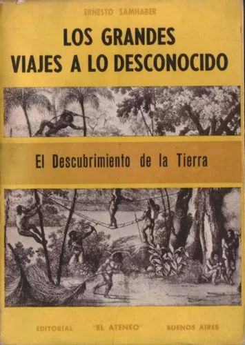 600 páginas. EL encanto de países exóticos y costas lejanas, mares desconocidos, caminos nunca recorridos, tesoros misteriosos y antiguas leyendas marítimas se extiende a todo lo largo de esta hermosa obra. LOS GRANDES VIAJES A LO DESCONOCIDO es la historia fascinante de héroes y locos, obscuras existencias y brillantes caracteres, buscadores de tesoros y negociantes en pieles y especias, atrevidos capitanes y silenciosos exploradores, así también como de impenetrables selvas vírgenes, pavorosos desiertos y buques perdidos. El lector encontrará tratada extensamente la vida y la obra de los grandes descubridores, que llenaron la historia de la humanidad pasada: Marco Polo, Cristóbal Colón, Magallanes, Vasco de Gama, Cook, Livinsgtone, etcétera. Desde el primer mapamundi trazado en Babilonia cuando los fenicios habían dado la primera vuelta a África y los vikingos alcanzaron las costas de Groenlandia y América del Norte, hasta la conquista de los polos en épocas recientes por Nandsen y Peary, Amundsen y Scott, este libro ofrece el panorama más completo de esa aventura humana que es la conquista del más allá, nunca satisfecha y siempre poblada de misterios y encantamientos sin fin. Ernesto Samhaber, distinguido profesor alemán, ha escrito uno de los libros más sugestivos del tema, en un estilo ameno, en el que no falta la belleza y la fantasía, la información y ese imponderable que hace que un trabajo tenga la medida de obra maestra. La versión alemana de la que se han extraído gran parte de las ilustraciones, mereció una rápida acogida, lo mismo que las numerosas traducciones a otros idiomas; prueba cabal de que Los GRANDES VIAJES A LO DESCONOCIDO es un libro llamado a perdurar.