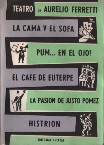 253 páginas. Aurelio Ferretti ingresa en la dramaturgia argentina a fines de la década del treinta y rápidamente gana en ella un lugar de significación. Su género predilecto, la farsa —hacer reír diciendo hacer reír enseñando— que tan pocos cultores tiene por las dificultades que el género mismo presenta, adquiere, en este dramaturgo, un cultor diestro, incisivo, mordaz. Eso le ha valido a sus obras, no sólo ser traducidas a varios idiomas, sino que recibiera su autor distintos e importantes premios: Comisión Nacional de Cultura (1937); Premio Municipal (1945 y 1946); Premio Nacional de Teatro (1956); y Premio Argentares-Fondo de los Artes (1962). Conocieron sus piezas diversos escenarios nacionales y extranjeros, y algunas de ellas, como LA FARSA DEL CAJERO QUE FUE HASTA LA ESQUINA, obtuvieron significativo éxito de público y crítica. Las obras que componen este volumen, pertenecen a los últimos años de su producción. Junto a las farsas PUM… EN EL OJO!, EL CAFÉ DE EUTERPE, EL SOFÁ Y LA CAMA, LA PASIÓN DE JUSTO PÓMEZ, incluímos HISTRIÓN, un denso drama moderno, que el autor llama drama de dramas, porque no es sino, el teatro dentro del teatro, el drama íntimo y personal del autor, agitándose, convulsionándose, junto al drama que el actor mismo realiza en el tablado, para su platea, para su público. Su reciente fallecimiento sorprendió a Ferretti en pleno dominio de su madurez creadora, cuando mucho aún era dado esperar de este dramaturgo. Pero el dolor de su pérdida prematura —por ese permanente milagro del teatro, que es milagro de risa y de llanto— determinará su sostenida permanencia a través de su creación artística, a través de sus personajes que se deslizan por la fina espiritualidad de la ironía, la crítica, la risa.